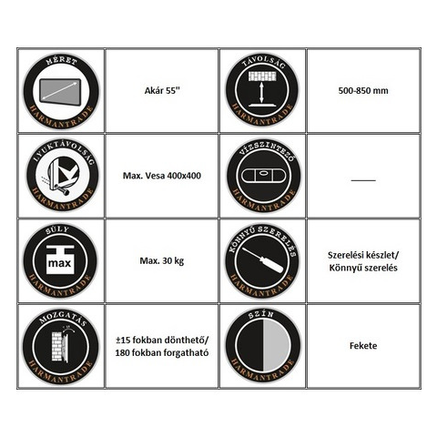 1 kép HARMANTRADE CM205 32"-55" TV mennyezeti tartó fekete 444-794mm (CM205)