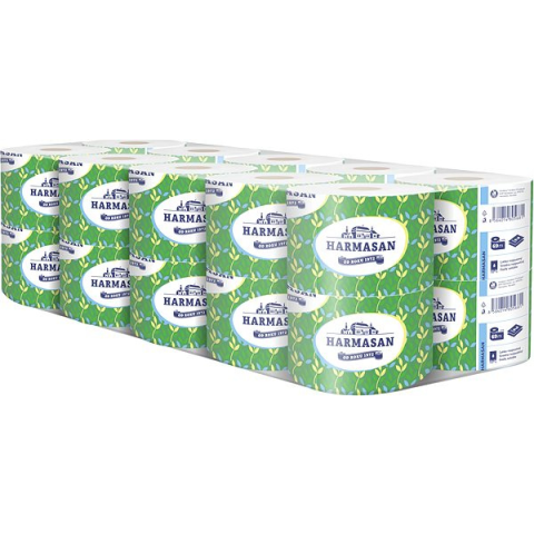 WC papír - kétrétegű, illatmentes A természetes színű HARMASAN toalettpapír kiemelkedik a környezetbarát tulajdonságaival. A papír kétrétegű, erős és a tekercs hossza 69 méter. A csomag 20 tekercs HARMASAN toalettpapírt tartalmaz.&nbs