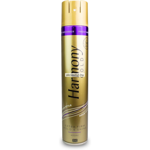 Harmony Gold Extra Firm Hold & Shine hajlakk 400ml Előnyök, amelyeket imádni fog: Hosszantartó tartás akár 24 óráig. UV-elnyelőt, B% provitamint és argánolajat tartalmaz. Megőrzi a haj természetes megjelenését, javítja a fényét és tapintását. Nem ragadó