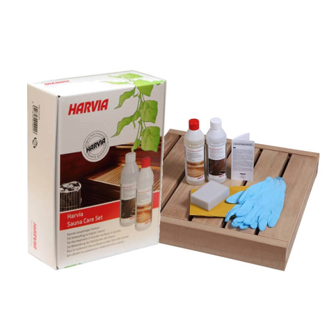 A Harvia szaunaápoló szett a szauna fa felületeinek és a fából készült kiegészítőinek a tisztítására és fertőtlenítésére szolgál. A Harvia szaunaápoló készlet egy üveg szauna tisztító- és fertőtlenítőszert (500 ml), paraffinolajat (500 ml), egy szivacsot, védőkesztyűt és csiszolópapírt tartalmaz.