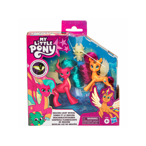 Én kicsi pónim: Sárkányfény - Sötétben világító póni figuraszett: ismerd meg Blaize Skysongot, a varázslatos sárkányt a My Little Pony világából! A játékszett három aranyos figurát tartalmaz: Alicorn Sunny Starscoutot, a kis Sparky Sparkeroni sárkányb