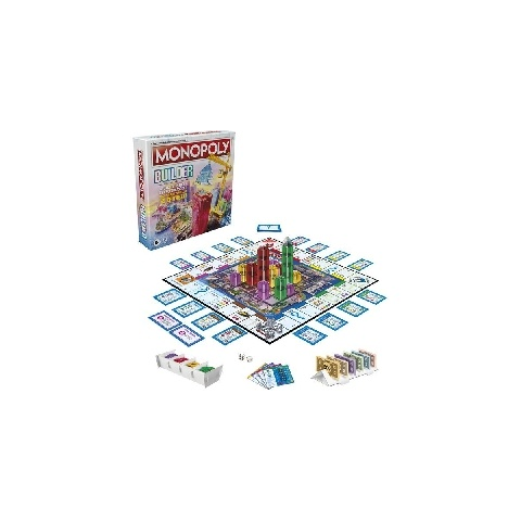Ez a Monopoly játék egy stratégiai csavarral, a Monopoly-sziget megjelenítésével teszi még érdekesebbé a játékmenetet. A Monopoly Builder stratégiai játékban a játékosok járják a táblát, és ingatlanokat vásárolnak, valamint bérleti díjat és nyersanyagokat gyűjtenek. Az építőkockákat is használják, hogy beépítsék a tábla közepén található szigetet! Minél többe