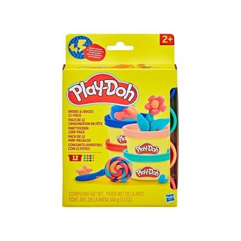 - 12 mini Play-Doh tégely - Négy különböző szín: piros, kék, zöld, narancs - Minden színből 3 db - Tartalmaz matricákat is a tégelyek személyre szabásához - Fejleszti a kreativitást és a finommotoros képességeket