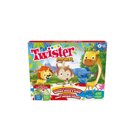 Készülj fel a fergeteges szórakozásra a Twister Junior játékkal! Egy állati kaland, amit minden gyerek imád, kortól függetlenül! Ezt a nagyszerű játékot 3 éves és idősebb gyerekeknek készítettük, és egy kétoldalú szőnyeg, valamint egy megfordítható pörgető is tartozik hozzá, ami két különböző nehézségű játékmódot tesz lehetővé. A szőnyeg egyik oldalán az 1. sz