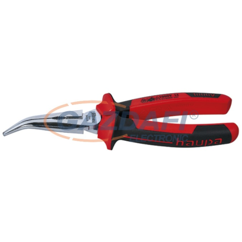 HAUPA 211210 1KV tel.fogó hajlított 45 fokkal Csőrösfogó DIN ISO 5745 VDE, 45°C 45 AM, olajedzett, egyenes vagy hajlított belül lapos, kúpos csőrrel, a vágó élek induktív úton után edzve, kemény huzalokhoz max. 150 kp/mm² (N 1500), krómozva, felhúzo