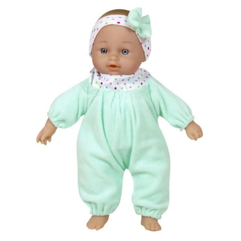 A kislányok átélhetik, milyen érzés lehet anyának lenni és gondoskodni egy édes kisbabáról. A puha testű, türkiz ruhás kislány babát ölelgethetik, szeretgethetik, sőt, akár vele is alhatnak. A baba mérete: 28 cm.