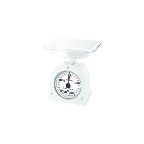 Analóg kijelző Könnyen leolvasható skála Mély mérőedény Kapacitás: 5kg 25g-os lépték Kézi nulla beállítás