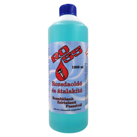 RO-55 rozsdaoldó és átalakító tulajdonsággal rendelkezik Foszforsav alapú készítmény, amely kationos felületaktív anyagokat tartalmaz. A fémfelületeket zsírtalanítja, rozsdátlanitja, tisztítja, foszfátoz és passzívál. Acél és öntöttvas felületekről hatékonyan eltávolítja rozsdát. Alkalmassá teszi a kezelt felületet különböző védőrétegekkel, így gyantákkal, festékekkel történő bevonására Alkalmazási terület: Hatékony termék az acél és öntöt