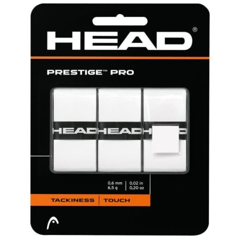 Grip ütőhöz - felső, 0,6 mm vastagság, anyaga poliuretán, 3 db a csomagban, fehér kivitel A Head Prestige Pro 3 db egy tenisz grip, amely nagyszerű játékérzést biztosít, és minden ütéskor magabiztosságot nyújt. Felső rétege különleges poliészterből készült elasztomer anyag kombinációjából