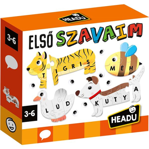 Társasjáték - gyerek játék, nehézségi foka könnyű magyar nyelvű, ajánlott 3 éves kortól Az Első szavaim (magyar nyelvű) egy aranyos, Montessori-pedagógián alapuló oktatójáték gyerekeknek, amely segít az első magyar szavak elsajátításában. A játék állatok képeit és nevük betűit tartalmazz