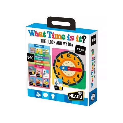 - Fejlesztő játék analóg és digitális időleolvasás tanulására - Segít a hét napjainak és napszakok tevékenységeinek megértésében - Fejleszti a logikai gondolkodást, nyelvi és matematikai készségeket - Társas helyzetekben a szabályok követésének gyakorlása - Ajánlott korosztály: 5-10 év Csomagolás mérete: 25 x 25 x 6 cm