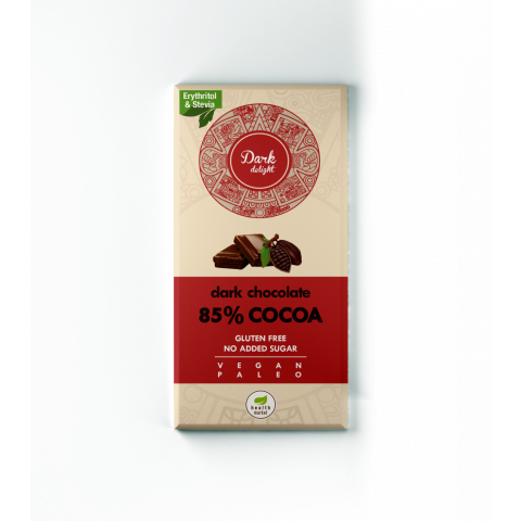 Health Market Dark Delight Étcsokoládé 80g Étcsokoládé édesítőszerekkel Gluténmentes, tejmentes, paleo, vegán, ketogén diétába beilleszthető Hozzáadott cukrot nem tartalmaz. Természetes módon előforduló cukrot tartalmaz. Összetevők: Kakaómassza, zsír