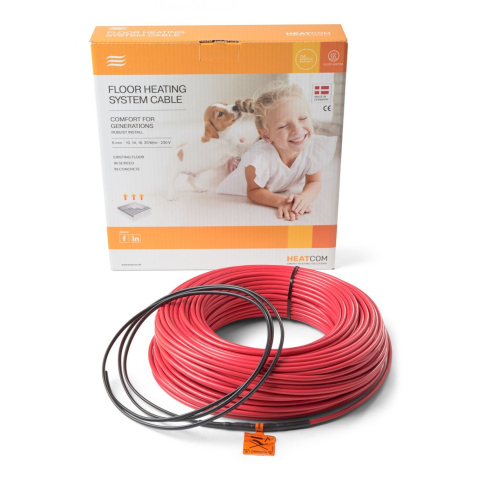 "Fűtőkábelek elektromos padlófűtéshez! A HEATCOM fűtőkábelei elsősorban beltéri padlófűtés kivitelezésére alkalmasak, de használhatóak ipari célokra, a fűtési cél és a körülmények ismeretében. Mi ez konkrétan? 6 mm vastag fűtőkábel, amely többféle hosszban elérhető, 10 és 20 W/m teljesítményben, 80-2300 W közötti összteljesítményekben. Ha elektromos padlófűtésünket fűtőkábellel szeretnénk megoldani, akkor az aljzatbeton kivitelezése s