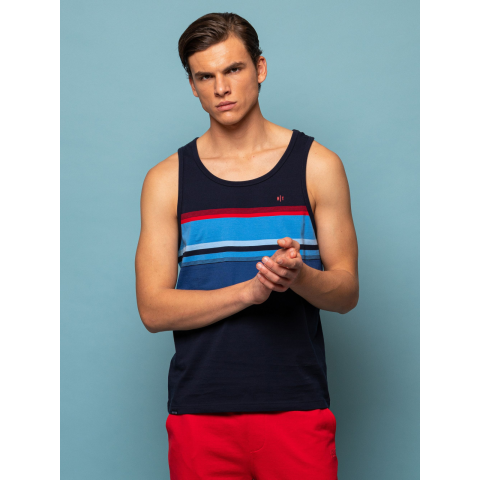 Heavy Tools Férfi Atléta Barbo C6S23243NA. Színe: navyEz a férfi ujjatlan felső pillanatok alatt feldobja az egyszerű farmer-póló összeállításokat! A trendi csíkozás és a kis márkajelzés stílusos megjelenést kölcsönöznek mindenkinek. A könnyű, puha tapintású tiszta pamut anyag, a keskeny váll és a kényelmes, kerek nyak maximális kényelemről gondoskodik akár egész napos viselet közben is. Tökéletes általános utcai visel