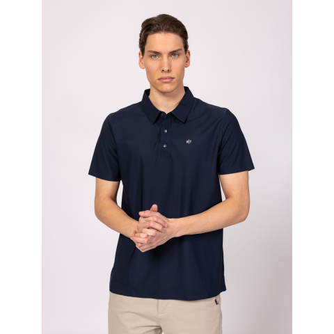 Heavy Tools Férfi Póló Derwin T20047S2501. Színe: navy Férfi rövid ujjú galléros póló, gyorsan száradó, technikai anyagbó, kényelmes szabással, elegáns gombos, galléros nyakmegoldással, ragasztott szélekkel, felhajtásokkal, elején kis nyomott márkajelzéssel. Anyaga: 88% poliamid, 12% elasztán. A modell 188 cm magas és L-es méretet visel. T20047S2501
