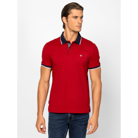 Férfi rövid ujjú galléros póló, klasszikus szabással, oldal hasítékkal, elegáns gombos, galléros nyakmegoldással, logózott gombolópánttal, elején kis nyomott márkajelzéssel, oldalában szövött címkével. Ujja alja kényelmes csíkos bordázott passzéban végződik. Anyaga: 100% pamut, single jersey. A modell 188 cm magas és L-es méretet visel. T20063W2503