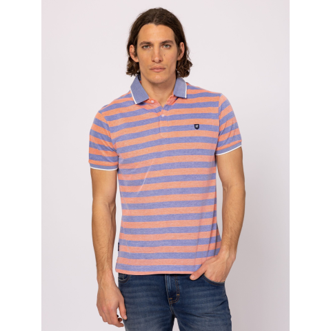 Heavy Tools Férfi Póló Dinero T20037S2501. Színe: orange Férfi rövid ujjú galléros póló, csíkos anyagból, klasszikus szabással, oldal hasítékkal, elegáns gombos, galléros nyakmegoldással, elején és oldalában kis szövött márkajelzéssel. Ujja alja bordázott passzéban végződik a kényelmet szem előtt tartva. Anyaga: 80% pamut, 20% poliészter, oxford piké. A modell 188 cm magas és L-es méretet visel. T20037S2501