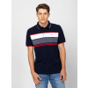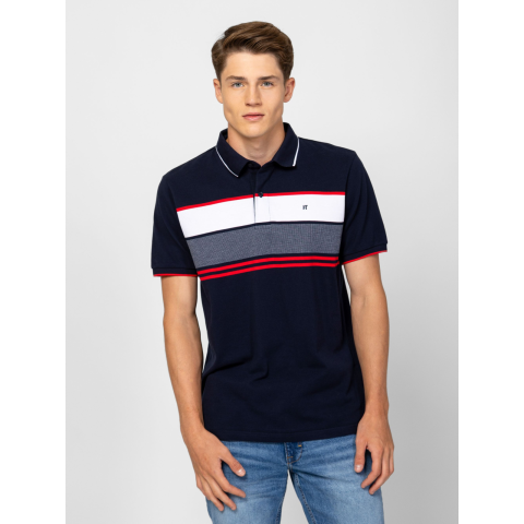 Férfi rövid ujjú galléros póló, klasszikus szabással, oldal hasítékkal, elegáns gombos, galléros nyakmegoldással, mell részén ritmikus csíkozással, elején 3D hatású márkajelzéssel, oldalában szövött címkével. Ujja alja kényelmes bordázott passzéban végződik. Anyaga: 100% pamut, piké. A modell 188 cm magas és L-es méretet visel. T20066W2501
