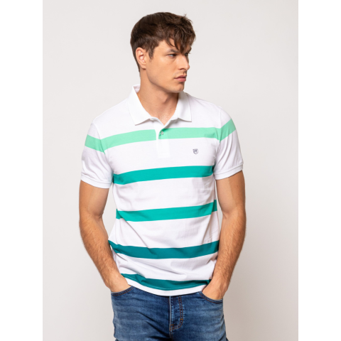 Heavy Tools Férfi Póló Duffy T20022S2501. Színe: teal Férfi rövid ujjú galléros póló, csíkos anyagból, klasszikus szabással, oldal hasítékkal, elegáns gombos, galléros nyakmegoldással, elején kis nyomott márkajelzéssel, oldalában szövött címkével. Ujja alja bordázott passzéban végződik a kényelmet szem előtt tartva. Anyaga: 100% pamut, single jersey. A modell 188 cm magas és L-es méretet visel. T20022S2501