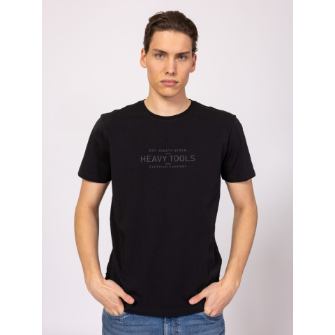 Heavy Tools Férfi Póló Magors25 T16089S2501. Színe: black Férfi rövid ujjú póló, egyenes szabással, kerek nyakkal, elején nagy nyomott, tone-in-tone márkajelzéssel. Anyaga: 100% pamut, single jersey. A modell 188 cm magas és L-es méretet visel. T16089S2501