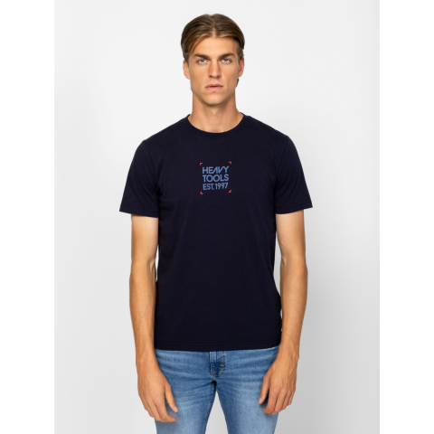 Heavy Tools Férfi Póló Magus T16178W2502. Színe: navy Férfi rövid ujjú póló, egyenes szabással, kerek nyakkal, elején nyomott márkajelzéssel. Anyaga: 100% pamut, single jersey. A modell 188 cm magas és L-es méretet visel. T16178W2502