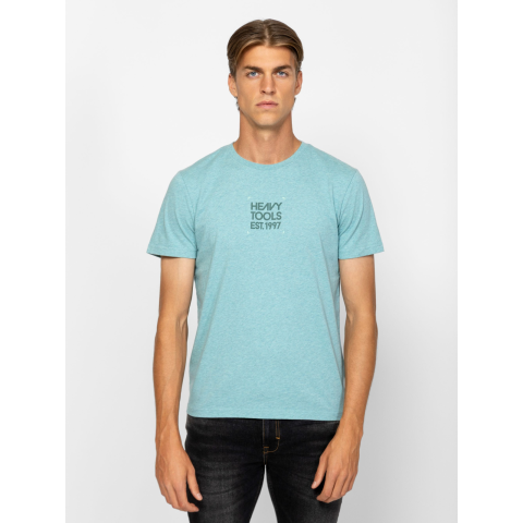 Heavy Tools Férfi Póló Magus T16178W2503. Színe: jungle Férfi rövid ujjú póló, egyenes szabással, kerek nyakkal, elején nyomott márkajelzéssel. Anyaga: 100% pamut, single jersey. A modell 188 cm magas és L-es méretet visel. T16178W2503