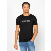 Férfi rövid ujjú póló, egyenes szabással, kerek nyakkal, elején nagy applikált márkajelzéssel, oldalában szövött címkével. Anyaga: 100% pamut, single jersey. A modell 188 cm magas és L-es méretet visel. T16111W2501
