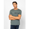 Férfi rövid ujjú póló, egyenes szabással, kerek nyakkal, elején nyomott márkajelzéssel, oldalában szövött címkével. Anyaga: 100% pamut, single jersey. A modell 188 cm magas és L-es méretet visel. T16105W2501