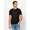 Férfi rövid ujjú póló, egyenes szabással, kerek nyakkal, elején nagy applikált, hímzett márkajelzéssel, oldalában szövött címkével. Anyaga: 100% pamut, single jersey. A modell 188 cm magas és L-es méretet visel. T16110W2503