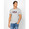 Férfi rövid ujjú póló, egyenes szabással, kerek nyakkal, elején nagy nyomott márkajelzéssel, oldalában szövött címkével. Anyaga: 100% pamut, single jersey. A modell 188 cm magas és L-es méretet visel. T16108W2501
