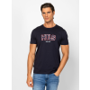 Férfi rövid ujjú póló, egyenes szabással, kerek nyakkal, elején nagy nyomott márkajelzéssel, oldalában szövött címkével. Anyaga: 100% pamut, single jersey. A modell 188 cm magas és L-es méretet visel. T16108W2503