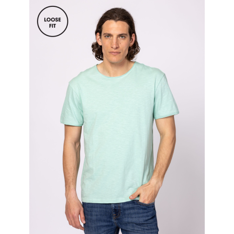 Heavy Tools Férfi Póló Mendo T16038S2501. Színe: opal Férfi rövid ujjú póló, bővebb, loose fit szabással, kerek, vágott szélű nyakkal, eleje alján szövött márkajelzéssel. Anyaga: 100% pamut, flama. A modell 188 cm magas és L-es méretet visel. T16038S2501