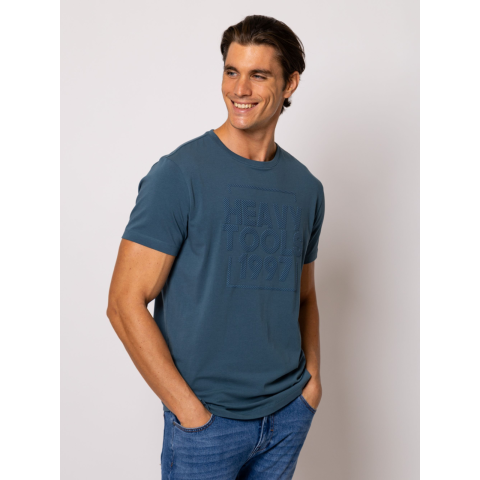 Heavy Tools Férfi Póló Miral T16008W2403. Színe: STORMY Férfi rövid ujjú póló, egyenes szabással és kerek nyakkal, elején nagy 3D hatású, nyomott dekorációval, oldalában szövött márkajelzéssel. A premium minőségű pamut anyagot elasztánnal kevertük a magasfokú kényelem és tartósság érdekében. Anyaga: 95% pamut, 5% elasztán, single jersey. A modell 188 cm magas és L-es méretet visel. T16008W2403