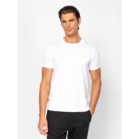 Férfi rövid ujjú póló, egyenes szabással, kerek nyakkal, elején kis nyomott márkajelzéssel, oldalában szövött címkével. Prémium pamut fonalból készült, mely puha tapintású, kellemes, lágy fényű, tartós anyagot eredményez. Anyaga: 100% pamut, single jersey. A modell 188 cm magas és L-es méretet visel. T16112W2503