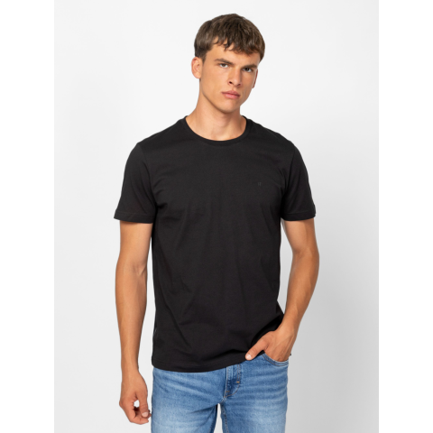 Heavy Tools Férfi Póló Mosho T16118W2502. Színe: black Férfi rövid ujjú póló, egyenes szabással, kerek nyakkal, elején kis nyomott márkajelzéssel, oldalában szövött címkével. Anyaga: 100% pamut, single jersey. A modell 188 cm magas és L-es méretet visel. T16118W2502
