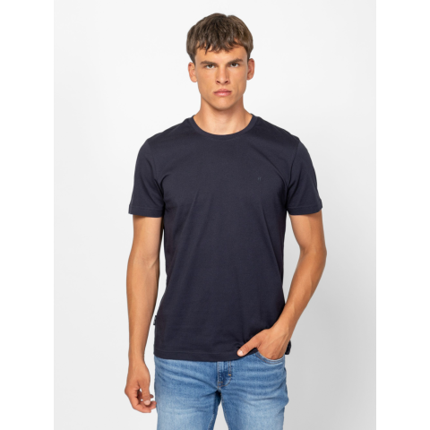 Heavy Tools Férfi Póló Mosho T16118W2503. Színe: navy Férfi rövid ujjú póló, egyenes szabással, kerek nyakkal, elején kis nyomott márkajelzéssel, oldalában szövött címkével. Anyaga: 100% pamut, single jersey. A modell 188 cm magas és L-es méretet visel. T16118W2503