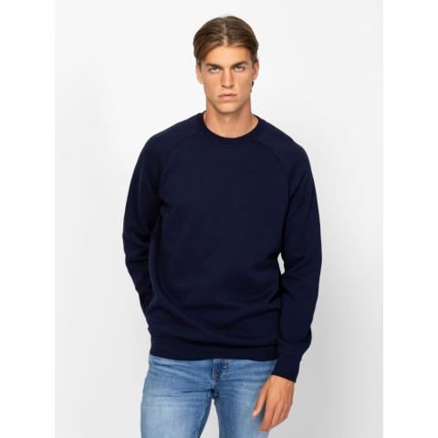 Heavy Tools Férfi Pulóver Derekw25 T01016W2502. Színe: navy Férfi kerek nyakú pulóver, sportos szabással, bordás passzés kézelővel és aljjal, kis szövött márkajelzéssel az eleje alján. Anyaga: 80% pamut, 20% poliészter, belül bolyhozott fleece. A modell 188 cm magas és L-es méretet visel. T01016W2502
