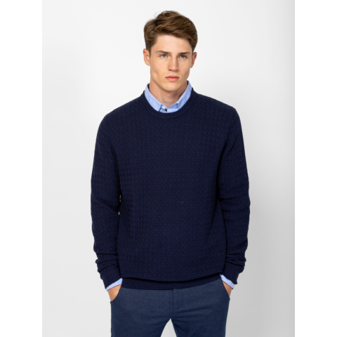 Heavy Tools Férfi Pulóver Hectorw25 T52044W2501. Színe: navy Férfi kötött pulóver, klasszikus szabással, stílusos kötésmintával, kerek nyakkal, bordás kötött kézelővel, nyakkal és aljjal, kis szövött márkajelzéssel az oldalában. Anyaga: 100% pamut, kötött anyag. A modell 188 cm magas és L-es méretet visel. T52044W2501