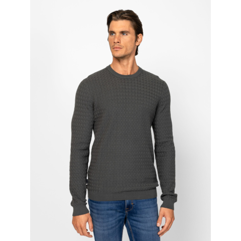 Heavy Tools Férfi Pulóver Hectorw25 T52044W2502. Színe: pine Férfi kötött pulóver, klasszikus szabással, stílusos kötésmintával, kerek nyakkal, bordás kötött kézelővel, nyakkal és aljjal, kis szövött márkajelzéssel az oldalában. Anyaga: 100% pamut, kötött anyag. A modell 188 cm magas és L-es méretet visel. T52044W2502