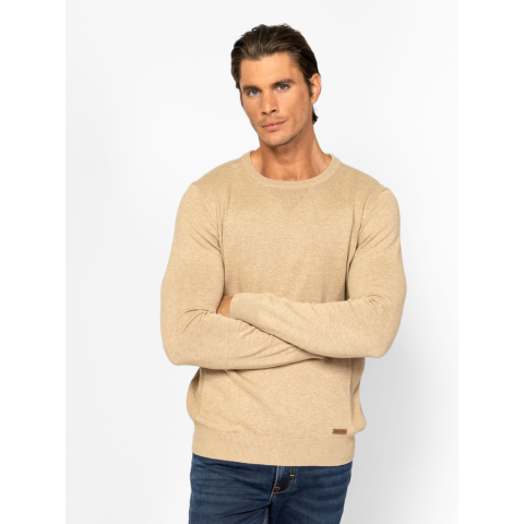 Heavy Tools Férfi Pulóver Hiberw25 T52043W2502. Színe: beige Férfi kötött pulóver, klasszikus szabással, stílusos kötésmintával, kerek nyakkal, bordás kötött kézelővel, nyakkal és aljjal, kis bőr márkajelzéssel az eleje alján. Anyaga: 100% pamut, kötött anyag. A modell 188 cm magas és L-es méretet visel. T52043W2502