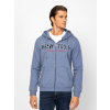 Férfi cipzáros, kapucnis pulóver, klasszikus szabással, kenguruzsebbel, bordás passzés kézelővel és aljjal, elején applikált, hímzett márkajelzéssel, zsebénél kis szövött márkajelzéssel. Anyaga: 57% pamut, 43% poliészter, belül bolyhozott fleece. A modell 188 cm magas és L-es méretet visel. T03046W2501