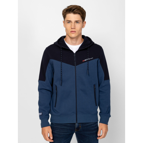 Férfi cipzáros, kapucnis pulóver, sportos szabással, cipzáros zsebekkel, nyomott márkajelzéssel az elején, szövött címkével az ujján. Viseld hozzá ZARAM melegítőnadrágunkat. Anyaga: 80% pamut, 20% poliészter, belül bolyhozott fleece. A modell 188 cm magas és L-es méretet visel. T03041W2503