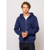Heavy Tools Férfi Pulóver Solver T03017W2401. Színe: moonlight Férfi cipzáros, kapucnis pulóver, klasszikus szabással, izgalmas színekben, egyenes zsebekkel, bordás passzés kézelővel és aljjal, elején hímzett márkajelzéssel, jobb zsebén fém márkajelzéssel. Anyaga: 75% pamut, 25% poliészter, belül bolyhozott fleece. A modell 188 cm magas és L-es méretet visel. T03017W2401