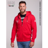Heavy Tools Férfi Pulóver Super A3S24033RE. Színe: red Férfi szurkolói, cipzáras, kapucnis pulóver, egyenes szabással, bordás passzés aljjal és kézelővel, kenguruzsebbel, magas pamut tartalmú anyagból, nyomott, nemzeti színű felirattal és kis márkajelzéssel az elején, nagy nemzeti nyomással a hátán, nemzeti címerrel a bal ujján, nemzeti szalaggal a jobb kélzelőn. Anyaga: 80% pamut, 20% poliészter, fleece. Modellek: Illés Fanni