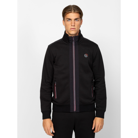 Férfi cipzáros, állógalléros pulóver, sportos megjelenéssel, többféle anyaggal, cipzáros zsebekkel, nyomott márkajelzéssel az elején, színes cipzárral. Viseld hozzá ZANDO melegítőnadrágunkat. Anyaga: 80% pamut, 20% poliészter, belül bolyhozott fleece, 100% poliamid, ripstop. A modell 188 cm magas és L-es méretet visel. T05026W2502