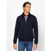 Férfi cipzáros, állógalléros pulóver, klasszikus megjelenéssel, többféle anyaggal, egyenes zsebekkel, kis szövött márkajelzéssel az ujján. Anyaga: eleje és háta: 50% polészter, 48% pamut, 2% elasztán, jacquard anyag, ujjak, gallér: 100% pamut, french terry, váll rész, zseb: 100% poliészter. A modell 188 cm magas és L-es méretet visel. T05027W2501