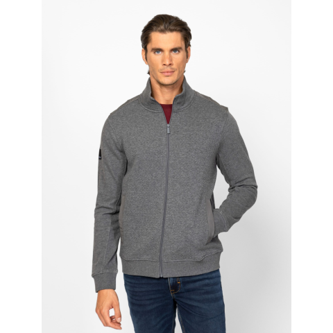 Férfi cipzáros, állógalléros pulóver, klasszikus megjelenéssel, többféle anyaggal, egyenes zsebekkel, kis szövött márkajelzéssel az ujján. Anyaga: eleje és háta: 50% polészter, 48% pamut, 2% elasztán, jacquard anyag, ujjak, gallér: 100% pamut, french terry, váll rész, zseb: 100% poliészter. A modell 188 cm magas és L-es méretet visel. T05027W2502