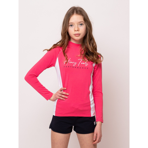 Heavy Tools Fiú Hosszú Ujjú Póló Arthur23 M5S23548PI. Színe: pinkLányka technikai hosszú ujjú felső, elején, ujján és hátán nyomott márkajelzéssel. Gyorsan száradó anyagból, UV védelemmel terveztük. Élvezd a vízparti napsütést biztonságban! Anyaga: 84% poliészter, 16% elasztán, anti UV, SPF 30+ UV védelem. M5S23548PI