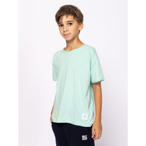 Heavy Tools Fiú Póló Milan T74008S2502. Színe: opal Fiú rövid ujjú póló, over size szabással és kerek nyakkal, elején alján kis márkajelzéssel. Anyaga: 100% pamut, flama. T74008S2502