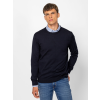 Férfi finom kötött pulóver klasszikus szabással, kerek nyakkal, kis szövött márkajelzéssel az oldalában, bordás kötött nyakkal, kézelővel és aljjal. Anyaga: 83% viszkóz, 17% nylon, kötött anyag. A modell 188 cm magas és L-es méretet visel. T52039W2502